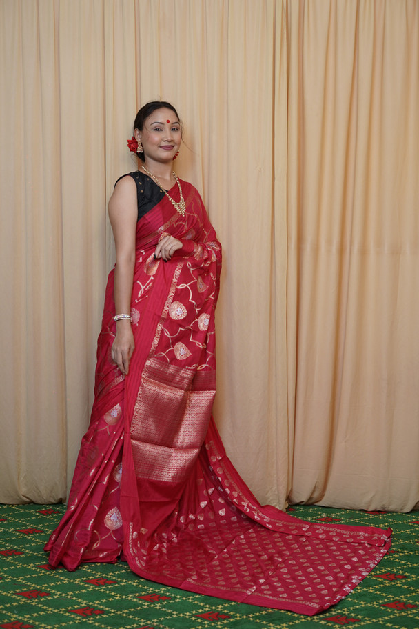 Presenting: Crimson Majesty – Semi-Katan Silk Saree